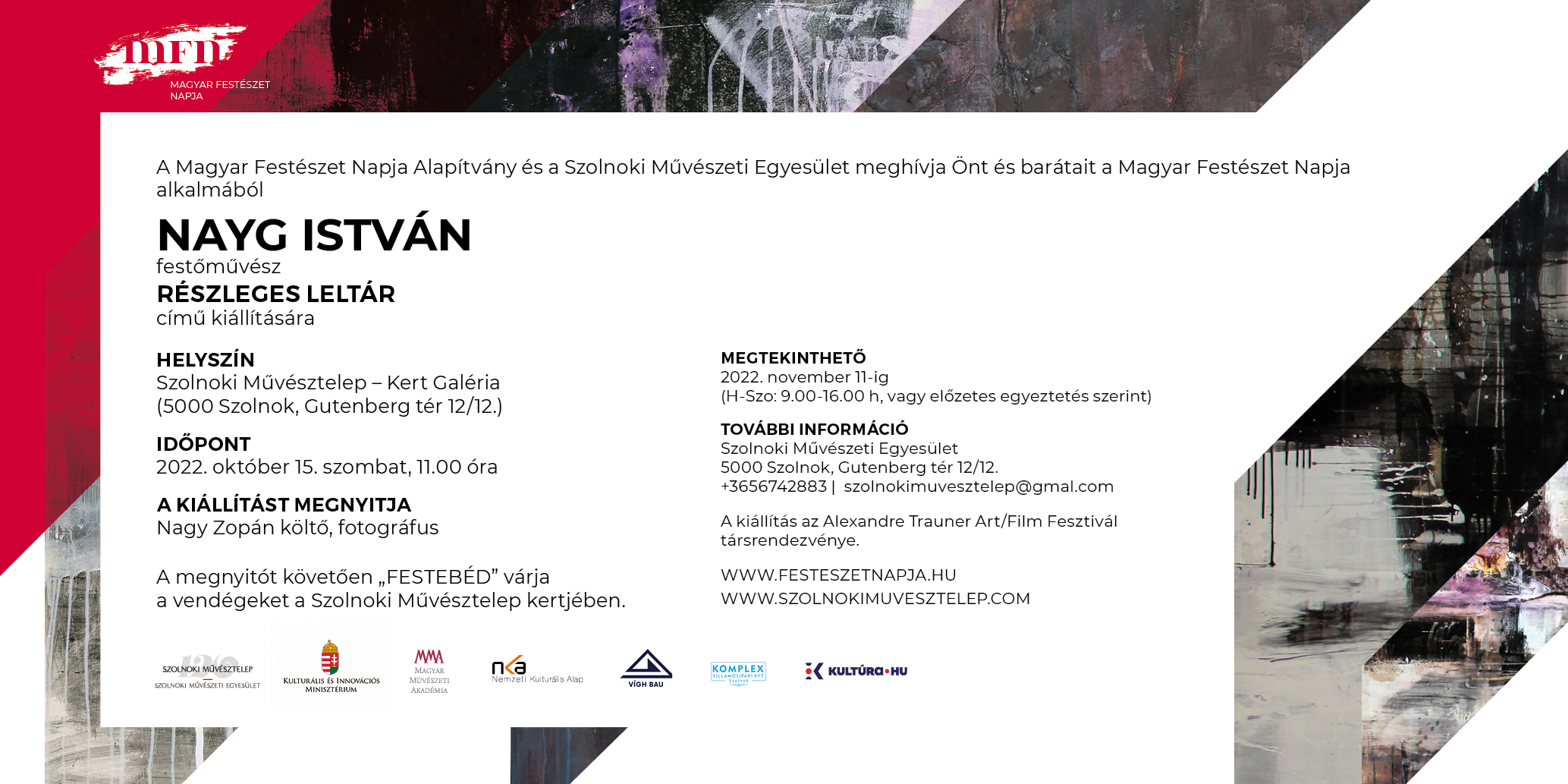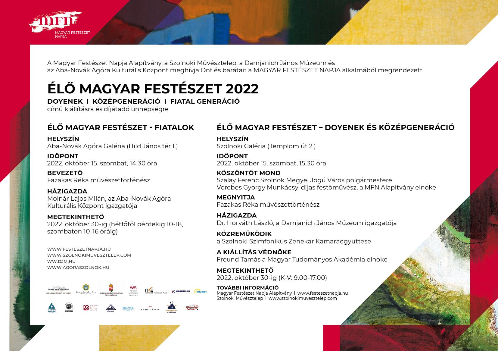 A Magyar Festészet Napja Alapítvány és a Szolnoki Művésztelep ünnepélyesen bemutatja a Magyar Festészet Napja 2022. évi fő rendezvénysorozatát Szolnokon