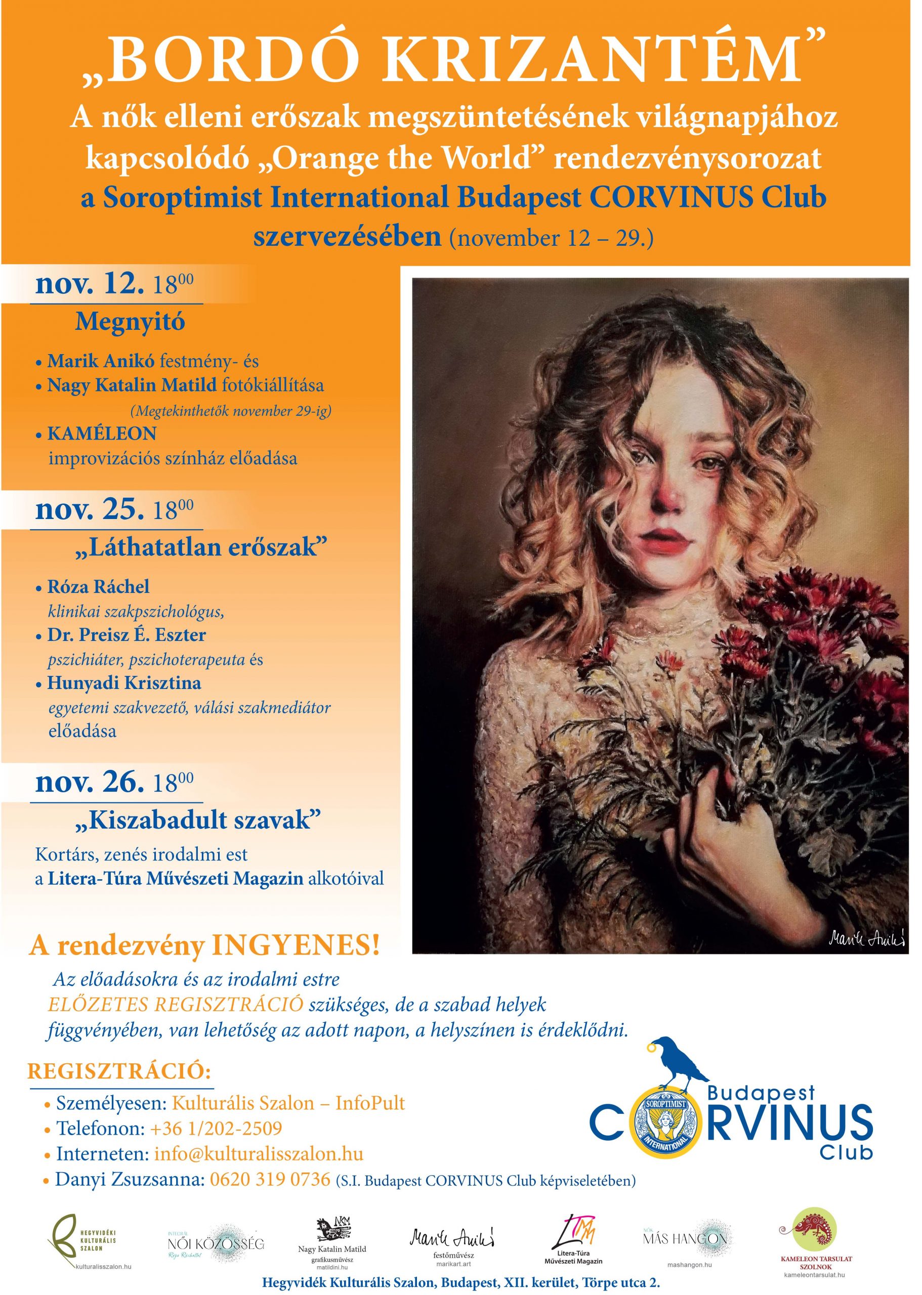Tegnap elindult a Bordó krizantém rendezvénysorozatunk. Az első fotók is megérkeztek Nagy Katalin Matild jóvoltából. Megérintő este volt. Köszönjük minden érdeklődő támogató jelenlétét! November 25-én mindenkit szeretettel várunk a „Láthatatlan erőszak” című előadásra, 26-án pedig az irodalmi estre!